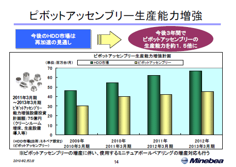 ミネベアは、ピボットアッセンブリー世界シェア60%のNo.1メーカーとして、拡大するHDD市場の要求に今後も応え続けていきます。