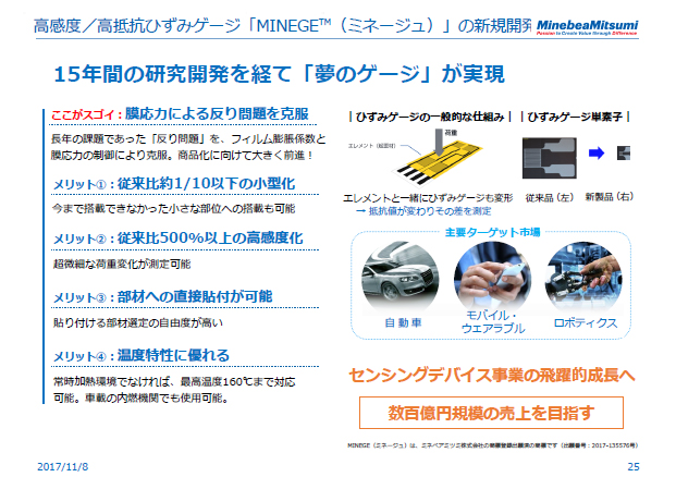 本日、こちらの会場の外に実物の展示をしていますので、ぜひご覧いただきたいと思います。アプリケーションとしては、自動車、モバイル・ウェアラブル、そしてロボティクスを主要ターゲットと考えており、数百億円規模の売り上げを目指すと発表させていただきましたが、個人的にはもう1桁いけるのではないかと思っています。