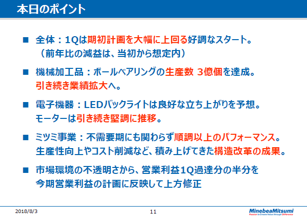 今回から1Qと3Qの決算電話会議に私も参加させていただくことといたしました。憶測を呼んだようなこともあったようですが、特別な発表はございません。