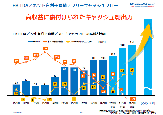 今日、最も皆さんにお伝えしたかったことは、ミネベアミツミは、昔のミネベアの発想とは違った会社になりたい、ということです。EBITDAベースで約1,000億円のキャッシュを稼ぎ出せる、そういう会社になってきました。これまでは入社した時にあった膨大な借入金がずっとトラウマのようになっていましたが、これからはこれだけの大きなキャッシュフローをいかに使って成長するか。そして、いかに株主に還元していくか。これが我々が次にチャレンジしなければならないことだろうと思っています。
