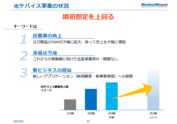 そしてプラス1の光デバイスは、売上が増加し、新しいアプリケーションにも入っていることから、利益ドライバーとして期待することは間違いではないと思っています。