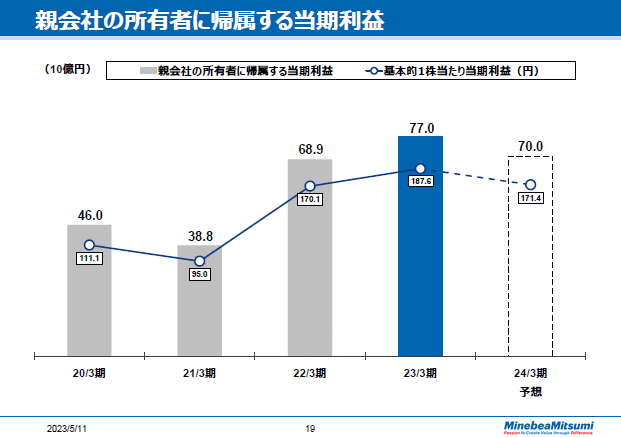 当期利益は770億円、1株当たりでは、187.6円となりました。当期利益、1株当たり当期利益は過去最高となりました。