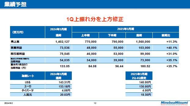 2025年3月期の通期業績予想につきましては、5月に発表した予想から上方修正しました。