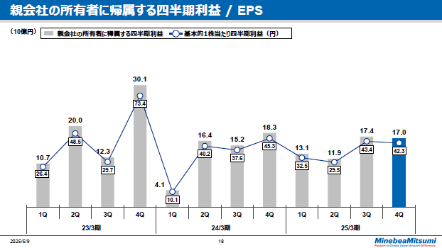 四半期利益は170億円、1株当たりでは42.3円となりました。