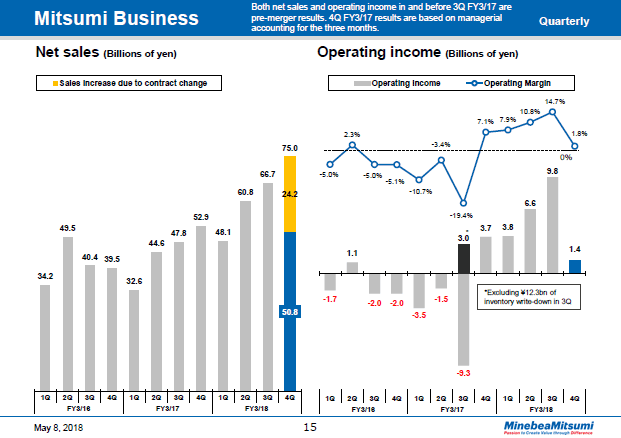 Mitsumi business segment quarterly trends.
