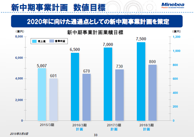 今、為替レートも良い状態になっています。タイが2回目の政策金利引下げを行ない、1ドル33.5バーツになりました。以前私がタイ政府に為替の問題を訴えに行ったときは、1ドル28.5バーツでした。私どもは生産の6割ぐらいをタイで行なっていますので、バーツ安の追い風は大きいと思います。ドル円レートも1ドル120円前後で良い状況であり、こういう事業環境が大きく変わらないということを前提にすると、これぐらいの成長は充分に可能と考えています。