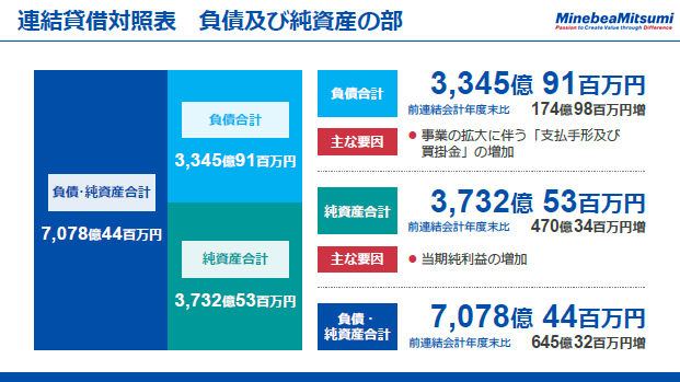 以上の結果、負債純資産の合計は7,078億4,400万円となり、前連結会計年度末比645億3,200万円の増加となりました。