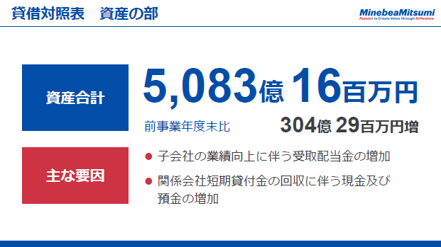 この主な要因は、子会社の業績向上に伴う受取配当金の増加及び関係会社短期貸付金の回収に伴う現金及び預金の増加によるものです。