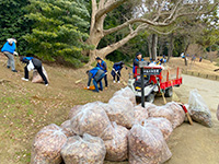 当社グループの従業員とその家族の総勢96名が参加し、地域社会への貢献活動の一環として、特別名勝・特別史跡である浜離宮恩賜庭園のサービスセンターの皆さまにご指導いただきながら、園内にある大量の落ち葉(90Lごみ袋約225枚分)を集める作業を行いました。