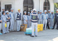 上海工場で実施された化学物質漏洩時の応急処置訓練の様子