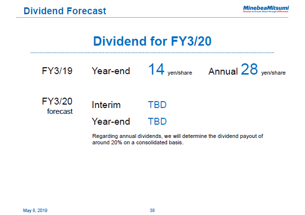We decide on the dividend payout every year in light of our performance with the aim of keeping the consolidated-basis dividend payout ratio at around 20%. So far we haven't made any decision.