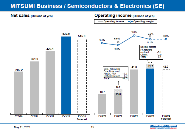 Let's look at the performance for the MITSUMI business segment, renamed Semiconductors & Electronics segment.
