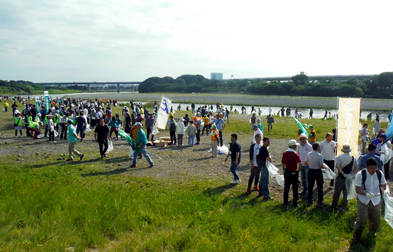 It was part of the Central Kanagawa Sagami River Summit, Six Municipality Joint Cleanup Campaign to protect the beautiful environment around Sagami River. Getting an early start at 7:30 a.m., participants picked up empty cans, plastic bottles, glass and other trash and put them into plastic bags they carried in hand.