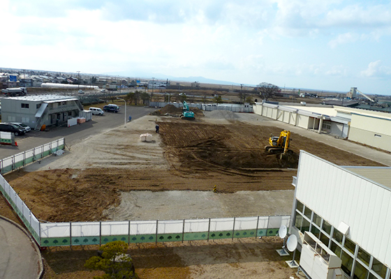 When reconstructing a building, the Akita Business Division finely ground up the concrete used in the foundations of the old building and reused it as gravel at the site. The new building (a three-story structure) is scheduled for completion in February 2020.