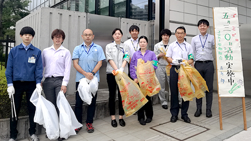 The Mitsumi Electric Tama Business Division conducted cleanup activities in nearby areas on May 30, 2018, which was zero waste day.