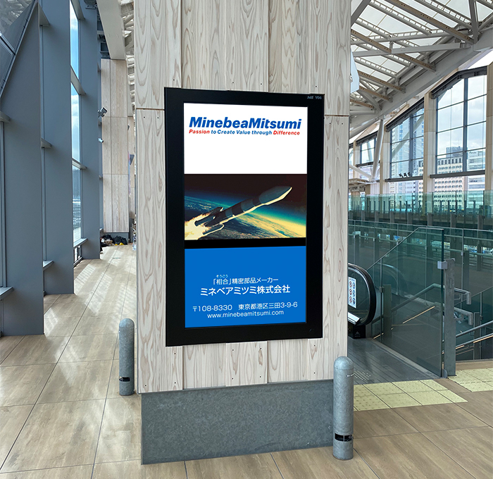 ミネベアミツミ株式会社は、当社東京本部のJR線最寄り駅となりました高輪ゲートウェイ駅改札内に、本日3月16日よりデジタルサイネージ広告を掲出いたしました。