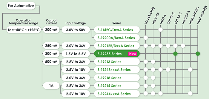 車載用LDOリニアレギュレータIC ラインナップ