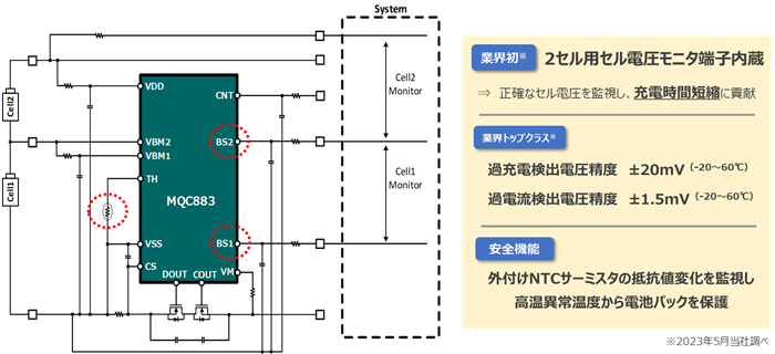 業界初!2セル用セル電圧モニタ端子内蔵保護IC「MQC883シリーズ」を発売